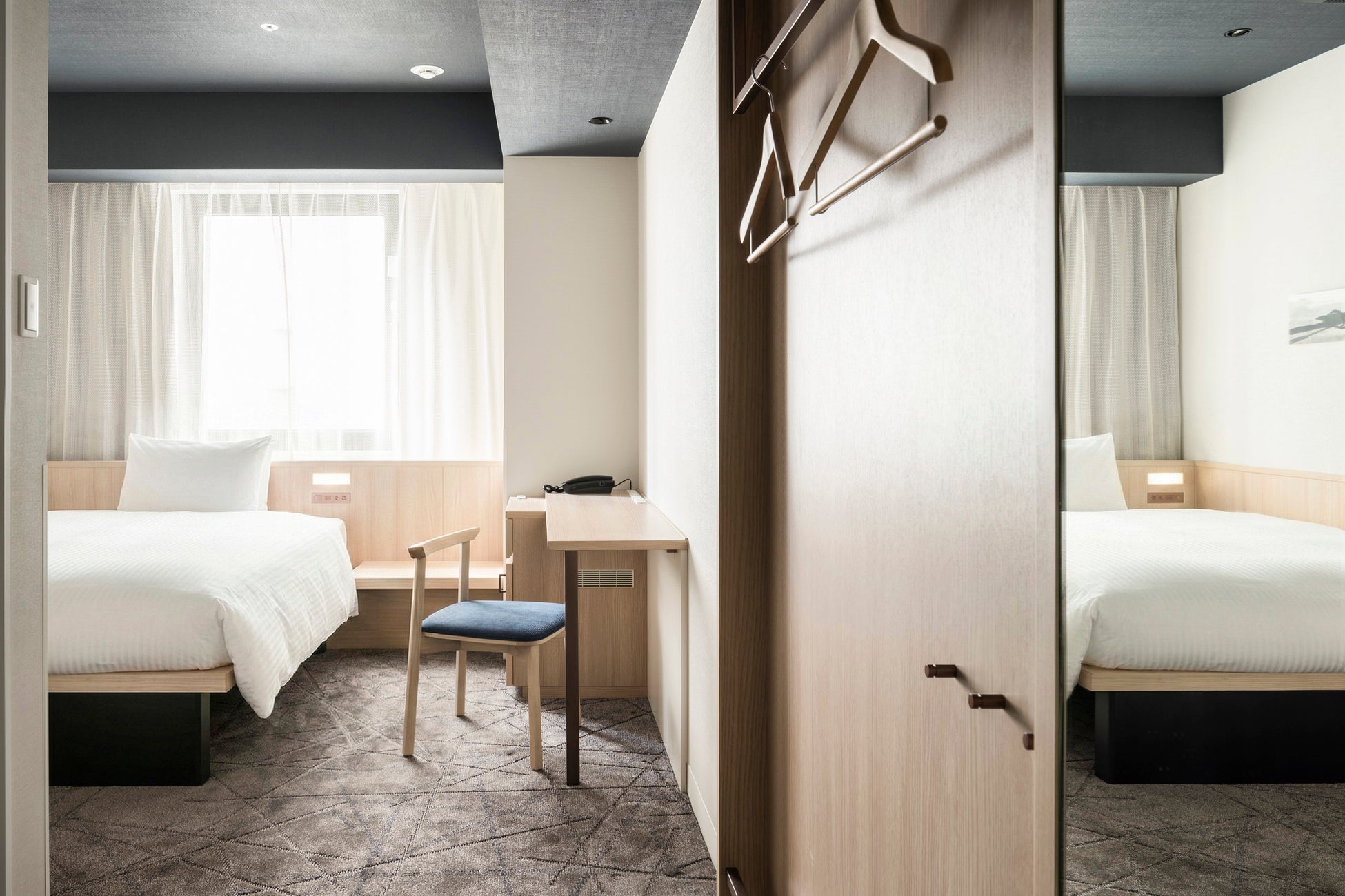 全室禁煙の客室には加湿機能付き空気清浄機を全室完備。23時まで営業の1階ラウンジでは、コーヒーやココア、ソフトドリンクなどが飲み放題。お部屋へのお持ち込みも可能です。