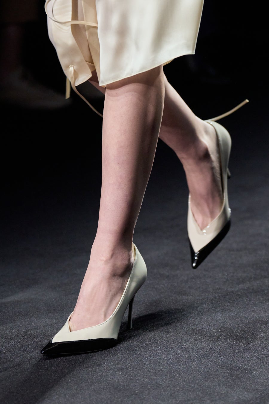 フットウェアでは、1954年にサルヴァトーレ・フェラガモがデザインしたフラットシューズに着想を得た、深いヴァンプの新作ポインテッドスティレットとスリングバックが登場し、船員服を想起させるカラーブロッキングやジュエル装飾が施されている。また、1950年代にサルヴァトーレが開発した、足を包み込むようにソールが巻き上がる技法 「シェルソール」の構造をもとに、ウェッジヒールと融合した曲線的なサンダルが誕生した。