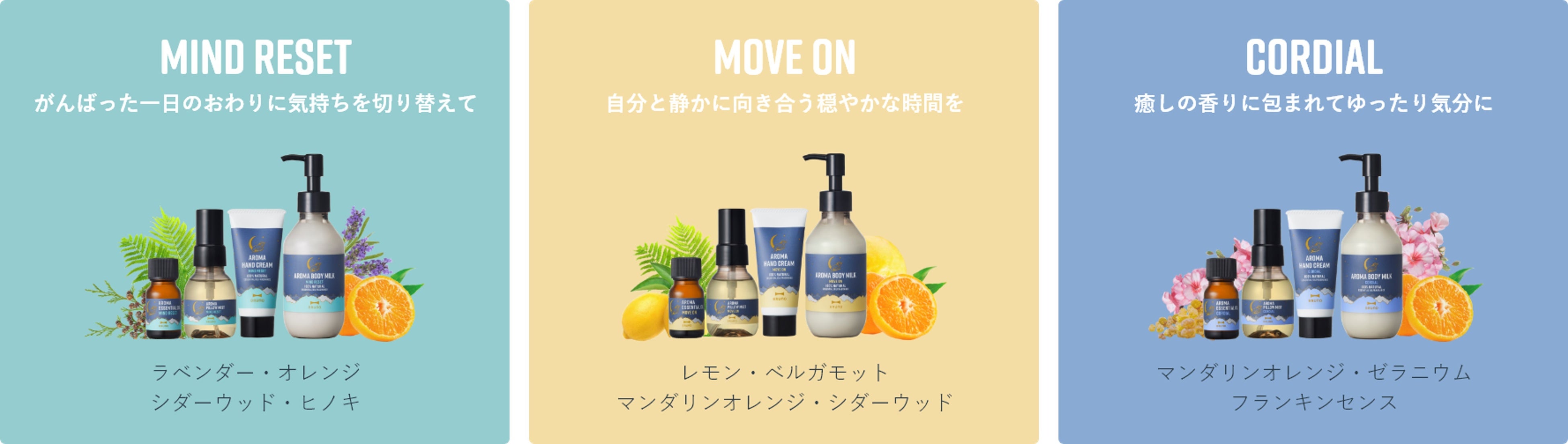 アロマエッセンシャルオイル(MIND RESET、CORDIAL、MOVE ON)