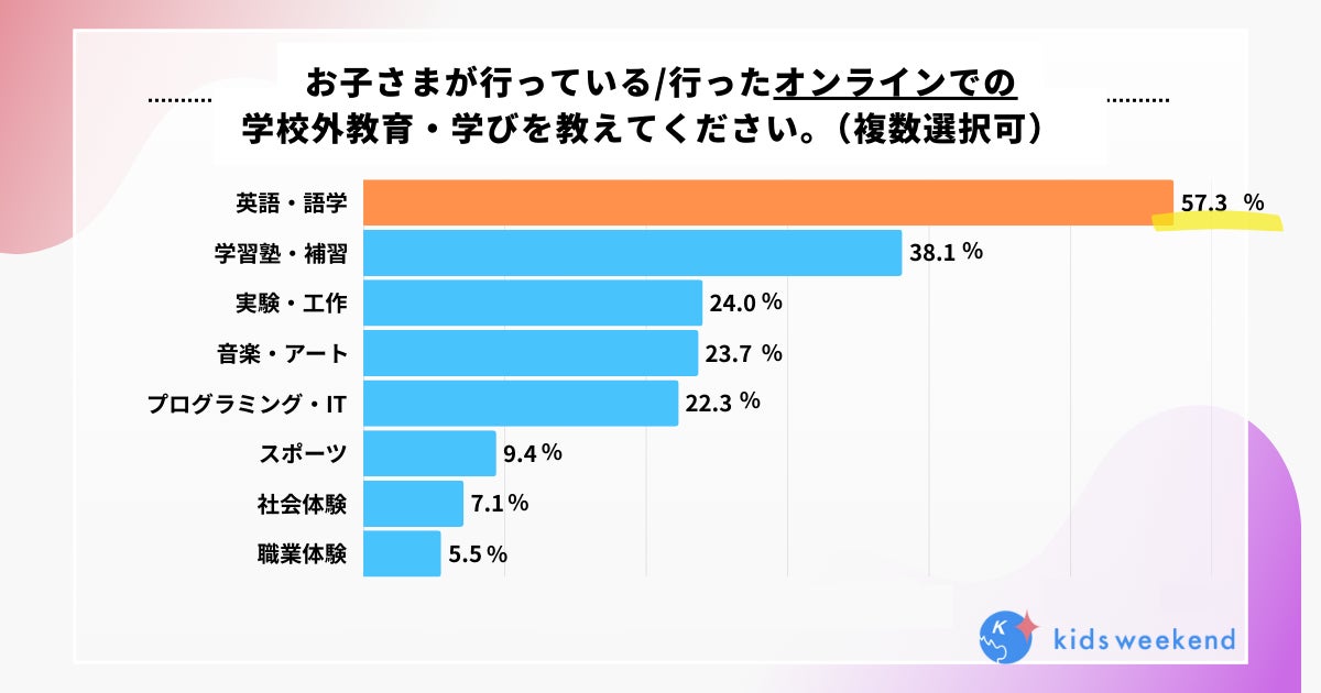 子ども向け「教育×オンライン」の分野で日本最大級のプラットフォームを展開するキッズウィークエンド株式会社(本社:東京都中央区、代表取締役兼CEO:三浦里江)は、小学生をもつ保護者600名以上を対象に、学校外の教育や学びの機会に対する保護者の意識調査を実施しました。