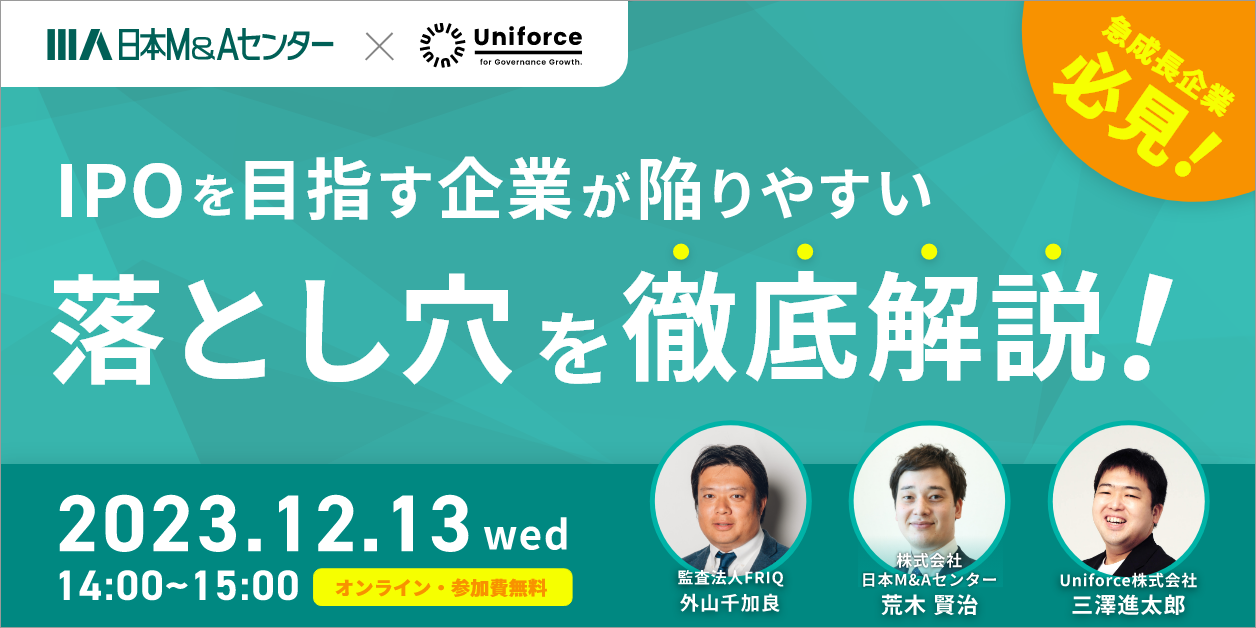 急成長企業必見!IPOを目指す企業が陥りやすい落とし穴を徹底解説する1時間【日本M&Aセンター x Uniforce】
