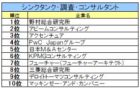 ◆シンクタンク・調査・コンサルタント業界ランキング