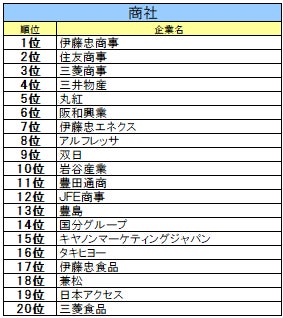 ▽2026卒・就職ブランド調査[早期]:伊藤忠3年連続1位、商社・金融・IT安定人気、学生の安定志向強まる