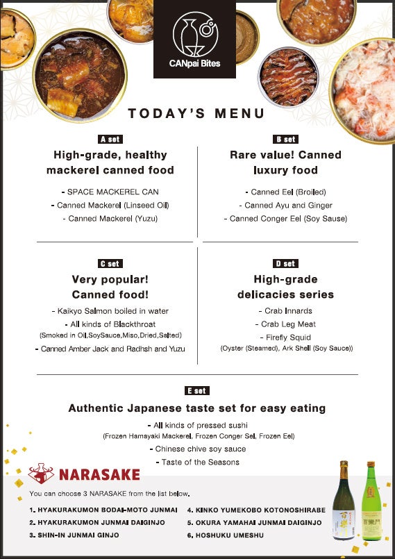 シンガポールで2023年10月11日~13日開催。5つの缶詰のセットから1つ×6つの奈良酒から3つ、好きな組み合わせを選んでペアリングが楽しめます。