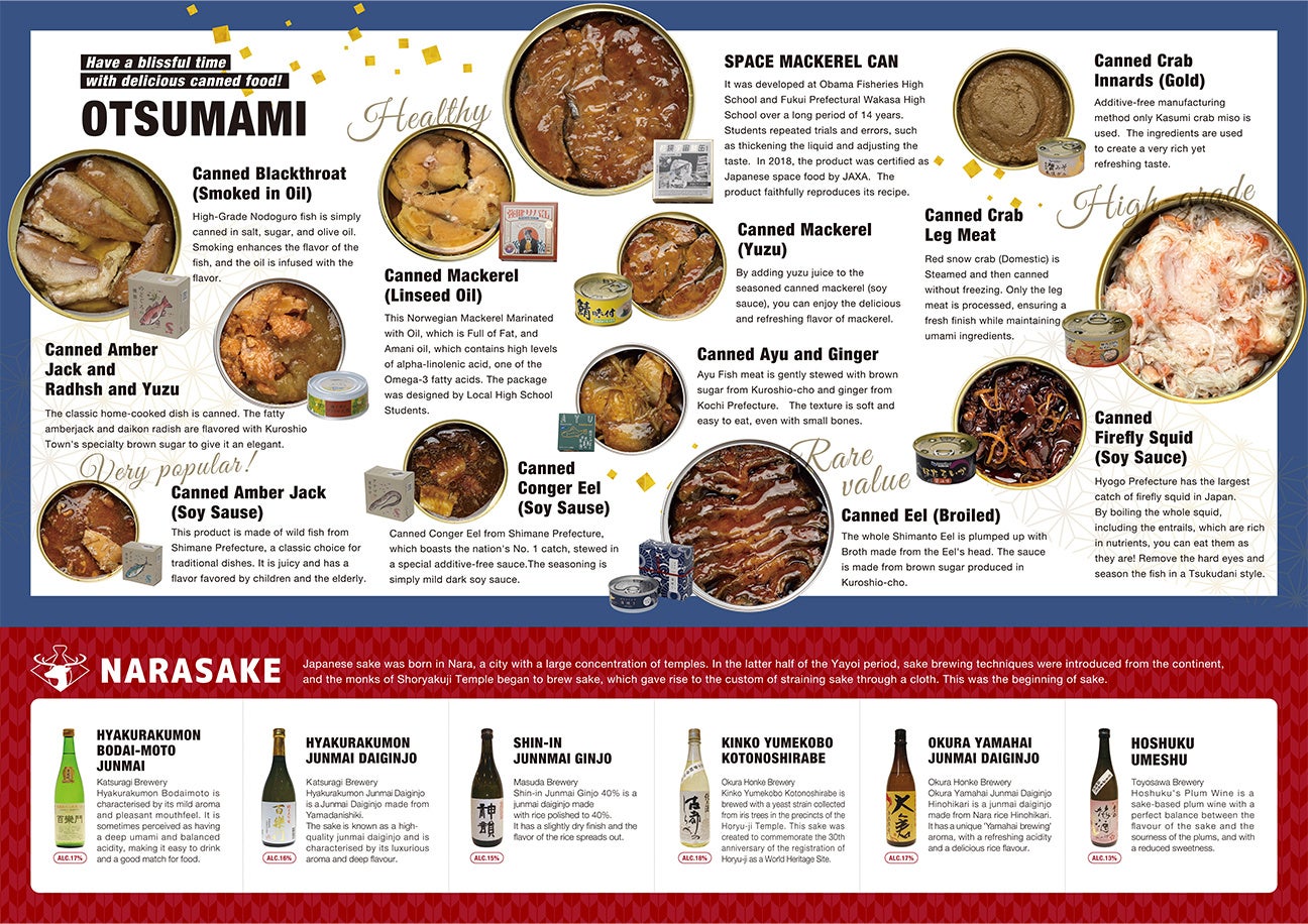 お好みで選んだ高級缶詰×奈良酒のペアリングを楽しんでいただき、日本食のおいしさ/奥深さを伝えます。