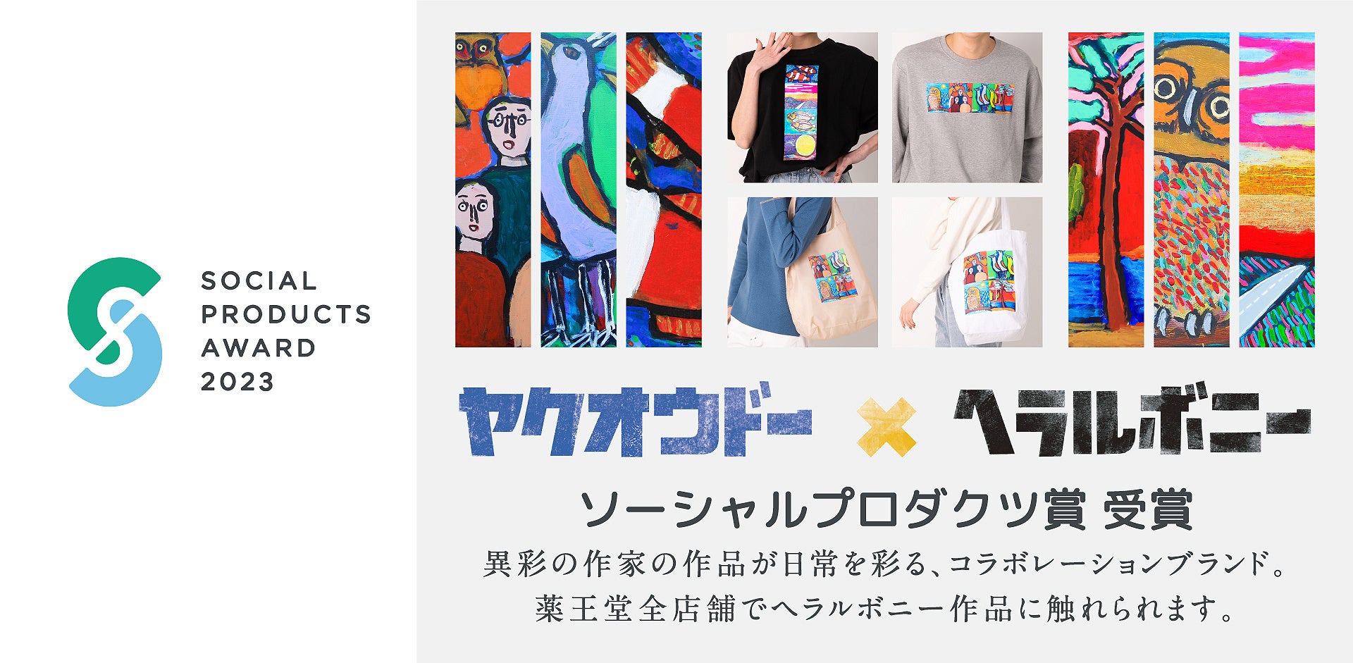 「東北から世界の健康をデザインする」を新ビジョンに掲げる当社グループの子会社であり、東北6県に381店舗のドラッグストアを展開する株式会社薬王堂(以下薬王堂)は、「異彩を、放て。」をミッションに福祉を起点に新たな文化を創ることを目指す福祉実験ユニット株式会社ヘラルボニーとコラボレーションしたアパレル「ヤクオウドー×ヘラルボニー」がソーシャルプロダクツ・アワード2023で「ソーシャルプロダクツ賞」を受賞しましたのでお知らせいたします。