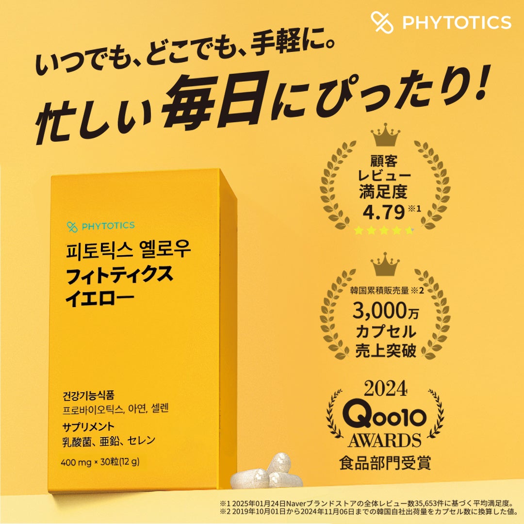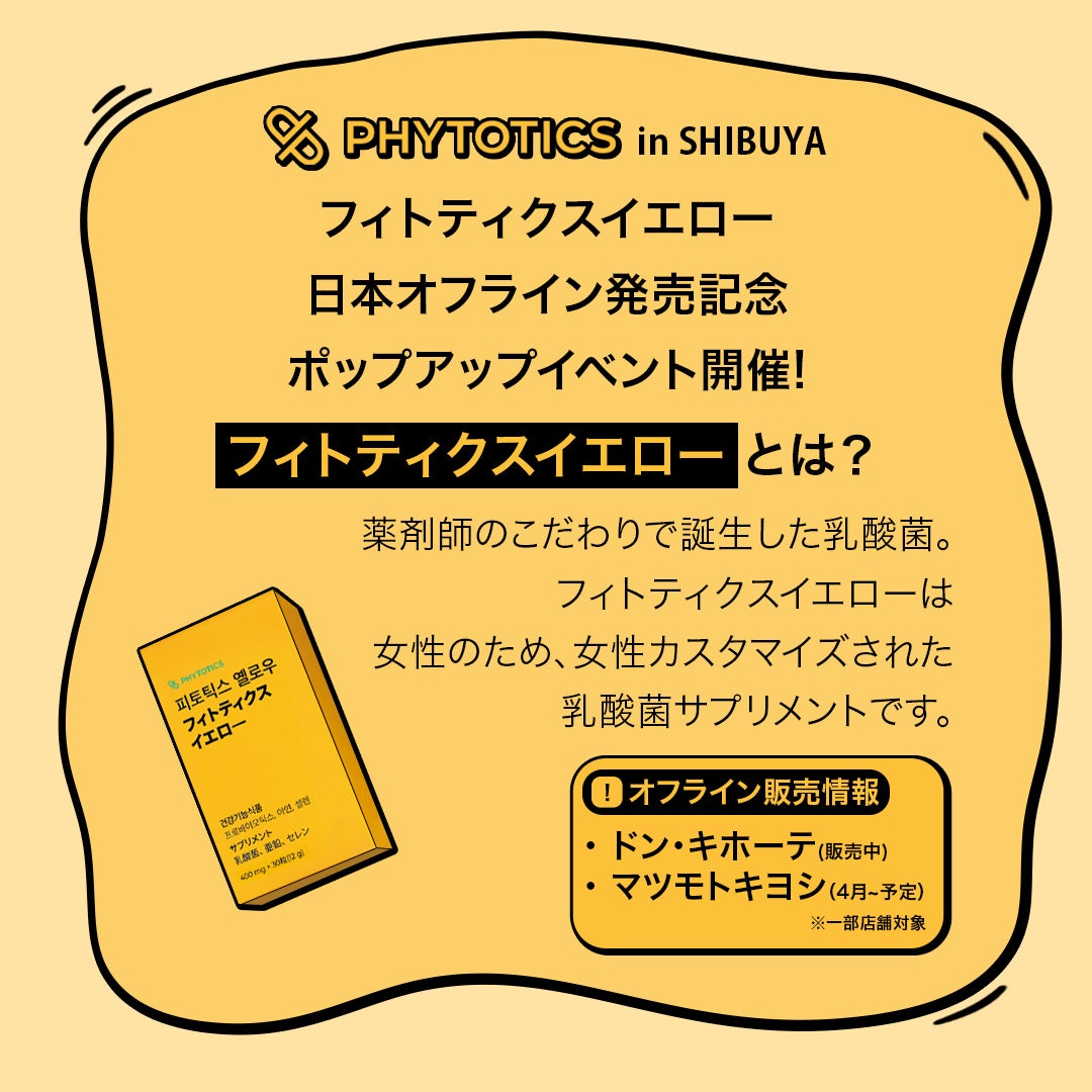韓国で累積販売数3,000万カプセルを突破した「フィトティクス・イエロー」が、2025年3月22日(土)から23日(日)にかけて、東京都渋谷区にてポップアップイベントを開催いたします。