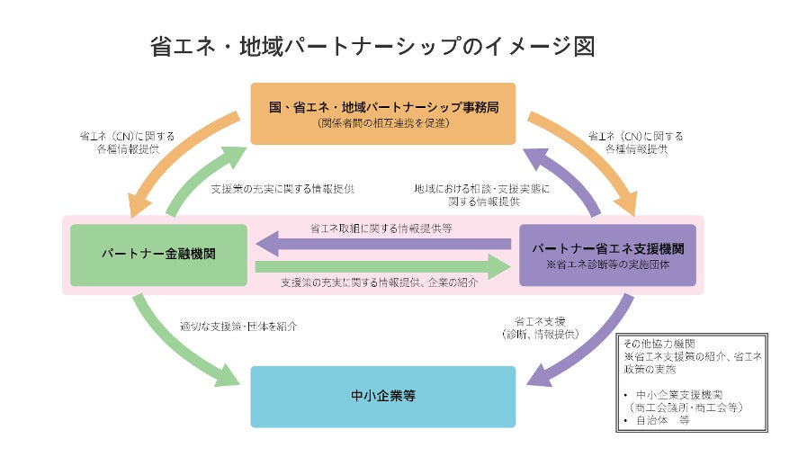 当社は「省エネ・地域パートナーシップ憲章」に賛同し、省エネは、エネルギーコストの削減に直結するとともに、カーボンニュートラル社会の実現に向けた第一歩として、重要な取組と捉え、パートナー金融機関との連携も図り、地域一丸となった中小企業のカーボンニュートラル化に資する省エネ支援に貢献して参ります。