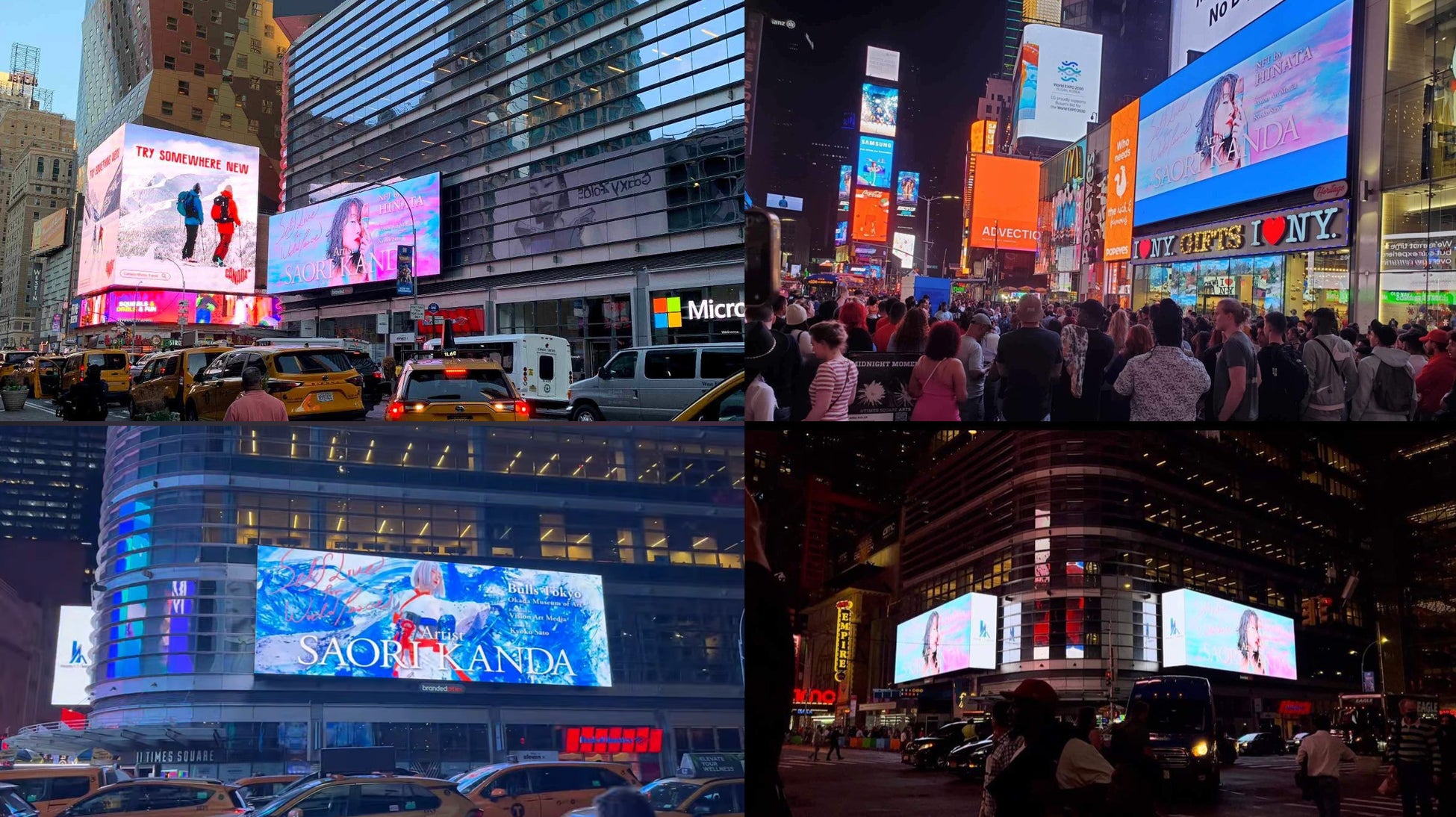 TIMES SQUARE TWIN SCREEN、TIMES SQUARE I LOVE NEW YORK SCREENなど、エリア内でも最も注目度の高い複数のスクリーンに映写することで、SAORI KANDA自らが提唱する「SELF LOVE for WORLD PEACE」を、アートに乗せて世界に発信いたしました。