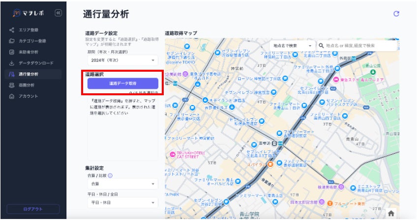 通行量分析画面における「道路データ取得」ボタンの配置を変更しました。
