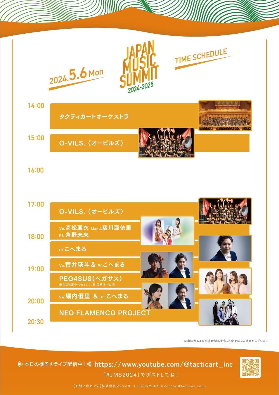 出演アーティスト:タクティカートオーケストラ、高松亜衣、角野未来、藤川亜依里、大野紘平(こへまる)、O-VILS .(オービルズ)、堀内優里、菅井瑛斗、 PEG4SUS(ペガサス)、NEO FLAMENCO PROJECT(ネオフラメンコプロジェクト)ほか *順不同