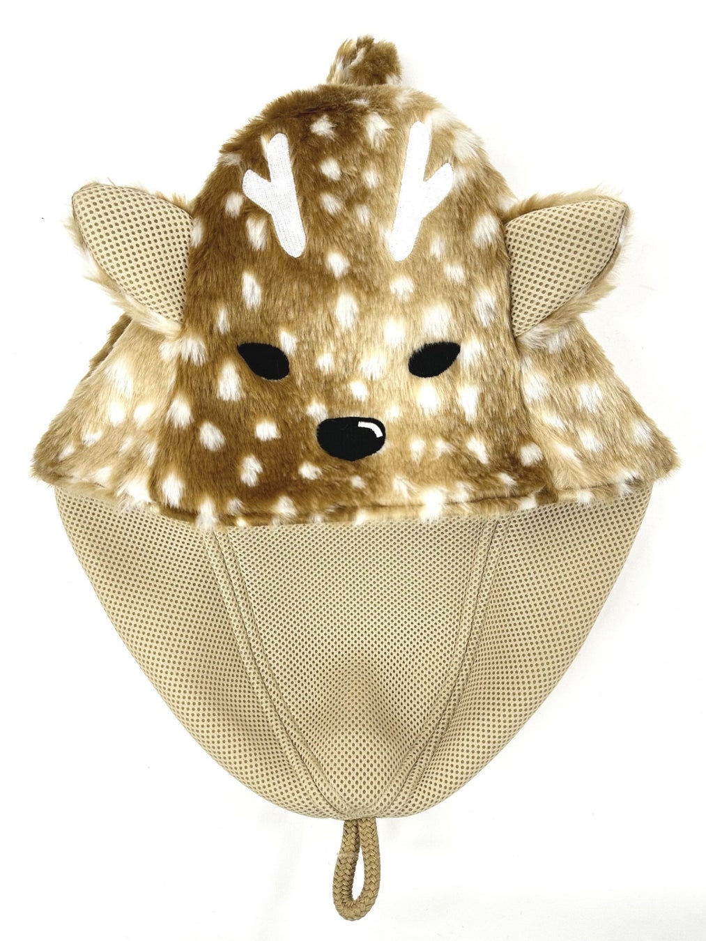 小鹿をイメージしたバンビ柄のフェイクファー生地は耐熱性や遮熱性に優れ、かつ洗濯機での丸洗いも可能と、見た目の可愛らしさだけでなく高い機能性を発揮します。また内側にはベストサウナハットの特徴でもあるメッシュが施されています。