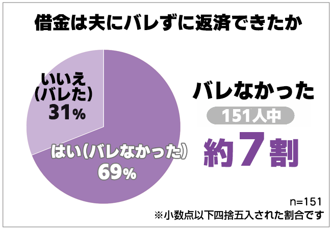 「バレずに返済できましたか」という問いに対しては、およそ7割の人がバレなかったと答えています。つまり、3割はバレてしまったということです。