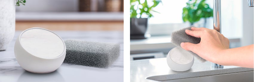 ダイニチ・コーポレーションは創業から、食器洗い用固形洗剤の製造販売を行っています。製造から販売を行う中で、固形洗剤と相性の良いスポンジを研究し、高品質ポリウレタンを使用した、従来のスポンジの概念を覆す「サンサンスポンジ」が生まれました。半年以上使えるほど丈夫で長持ちなので、ごみの削減に。