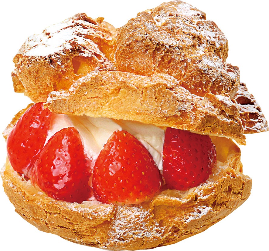 栃木県産のブランド苺である「とちあいか」のソースを使用した軽いタイプのカスタードクリームと練乳クリームを詰めたシュークリームです。栃木県産とちあいかのまろやかな味わいが楽しめます。