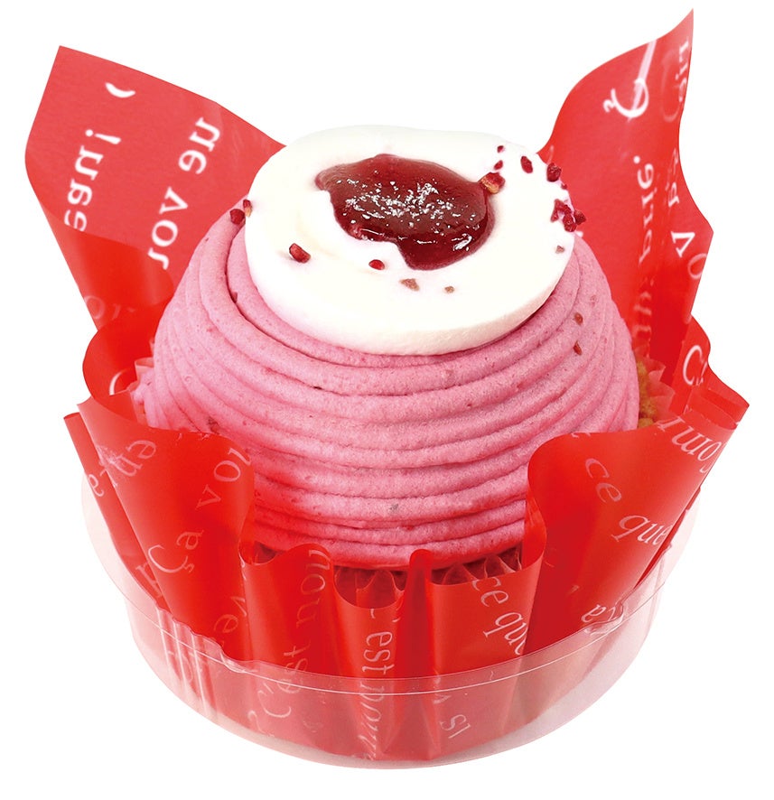 栃木県産ロイヤルクイーンのピューレを使用したモンブランです。ロイヤルクイーンソースをしのばせた苺風味のスポンジに、マスカルポーネクリームとロイヤルクイーンクリームを絞りました。上面はシャンテリークリームやロイヤルクイーンソース、ラズベリークリスピーで仕上げています。ケーキ全体でロイヤルクイーンの特徴である真っ赤な色を表現しました。