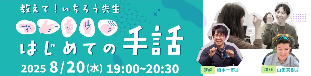 現在、9~10月に開催される第3期や、初心者向けセミナー「教えて!いちろう先生『はじめての手話』」などの各種手話セミナーで、参加者を募集しています。