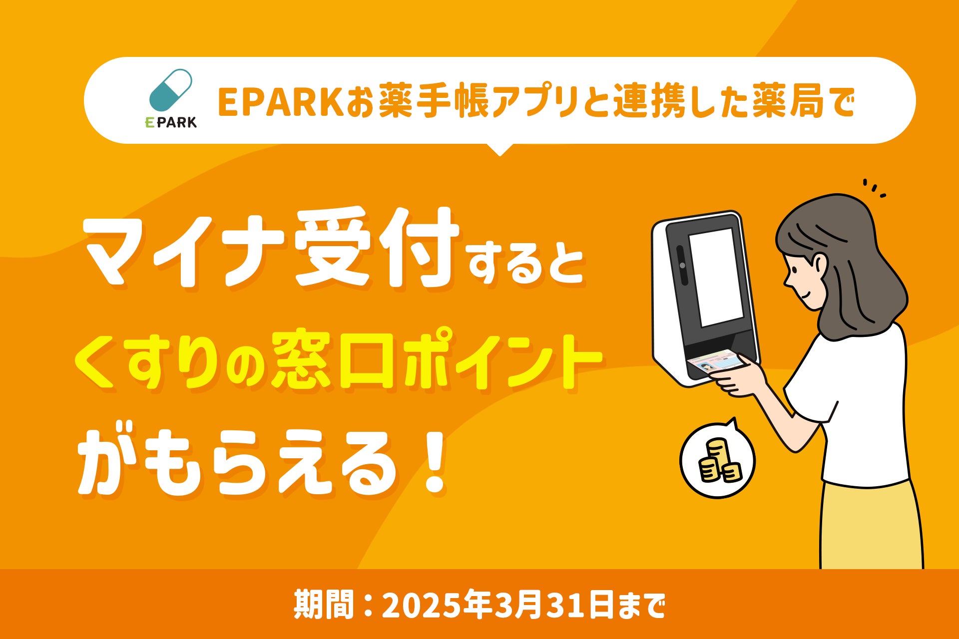株式会社くすりの窓口(本社:東京都豊島区、代表取締役社長:堤 幸治、以下「当社」)は、お薬情報を自動で電子版お薬手帳「EPARKお薬手帳」(以下「当アプリ」)に登録することができる薬局で、マイナ受付をするとポイントが付与される、ポイントプレゼント企画を2024年12月16日(月)~2025年3月31日(月)の期間限定で実施いたしますことをお知らせいたします。