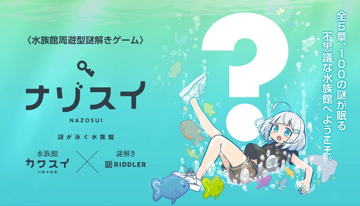 リドラが手がける「ナゾスイ」は、カワスイ館内の常設周遊型謎解きゲームとして2023年4月にスタート。全5チャプター・100問の謎を解き明かす中で、飼育員「ユユ」と「ハテナウオ」が登場し、参加者は水族館をめぐりながら「ナゾスイMASTER」を目指す内容が話題となっており、総プレイ人数は2万人を超えています。