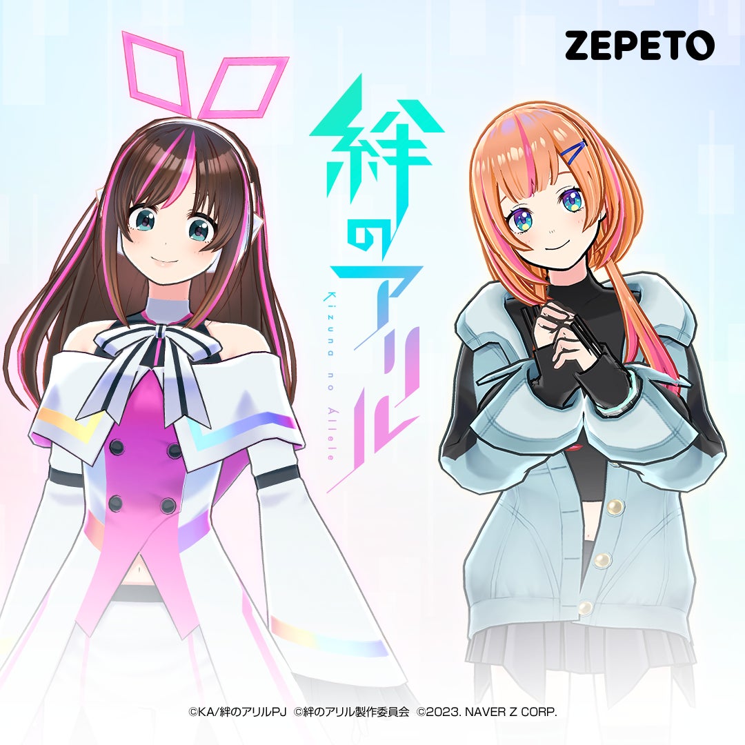 バーチャルYouTuberの草分けとなったキズナアイのプロジェクトの一環として制作されたアニメ『絆のアリル』から、大人気キャラクター「キズナアイ」と主人公「ミラク」になりきれるアイテムが登場です。ZEPETOでは実写のような表現や精巧な動きを自然に再現できる従来の3Dアバタータイプに加え、7月10日にアニメやVTuberのような2Dモデル風の表現ができる2Dアバタータイプをリリースしました。今回のアイテムは2Dアバタータイプに向けた初めてのコラボレーションアイテムとなっており、ユーザーはすべてのアイテムを獲得することで、よりキャラクターに近づいたカスタマイズが可能となります。