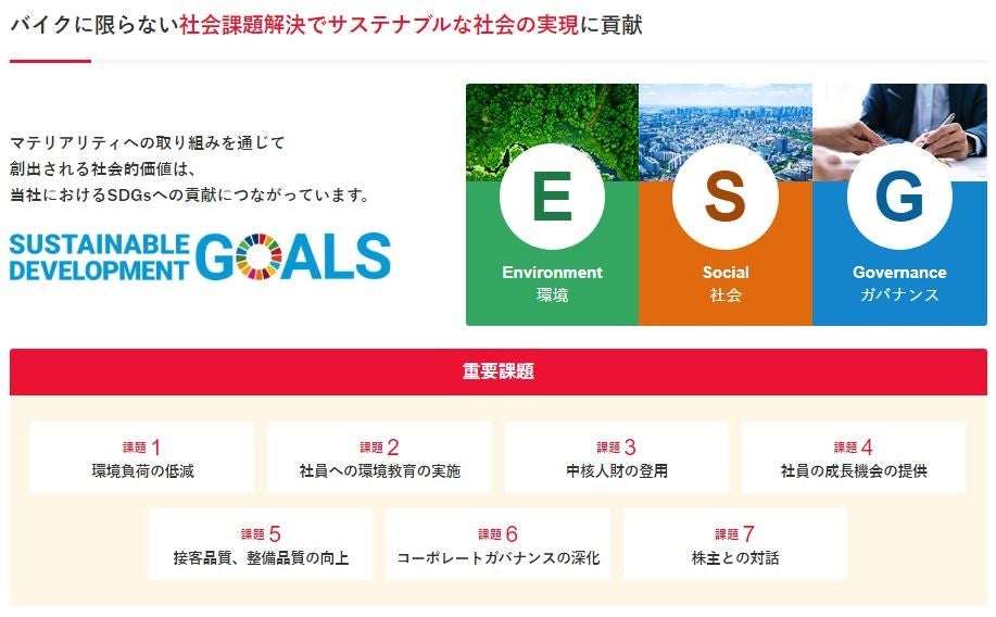 この度のコーポレートサイトの全面リニューアルは、これまでのバイクを中心とした内容からバイクはもちろんのこと、バイクに限らないライフデザイン企業をイメージした内容に刷新いたしました。そして、従来の企業情報、IR情報、プレスリリースに加えて、社会課題の解決を通じて50年後も、100年後も活躍し続ける企業を目指すためにもサステナビリティ情報などの新コンテンツや事業の取り組みや想い、考え方をより多くの皆さまにわかりやすくお伝えしたいと考え、全面リニューアルに至りました。