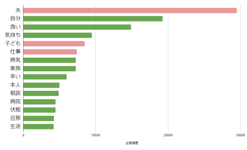 - 最も多く話題にされるのは「夫」について、「子ども」「仕事」についても多く言及される