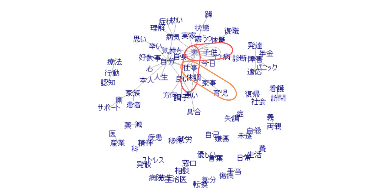 次に、これらのワードの出現傾向を更に細かく解析し、パートナーたちの抱える生活課題を抽出していきます。