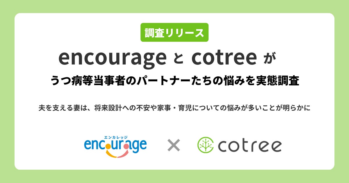 cotreeとencourageが、うつ病等当事者のパートナーたちの悩みを実態調査