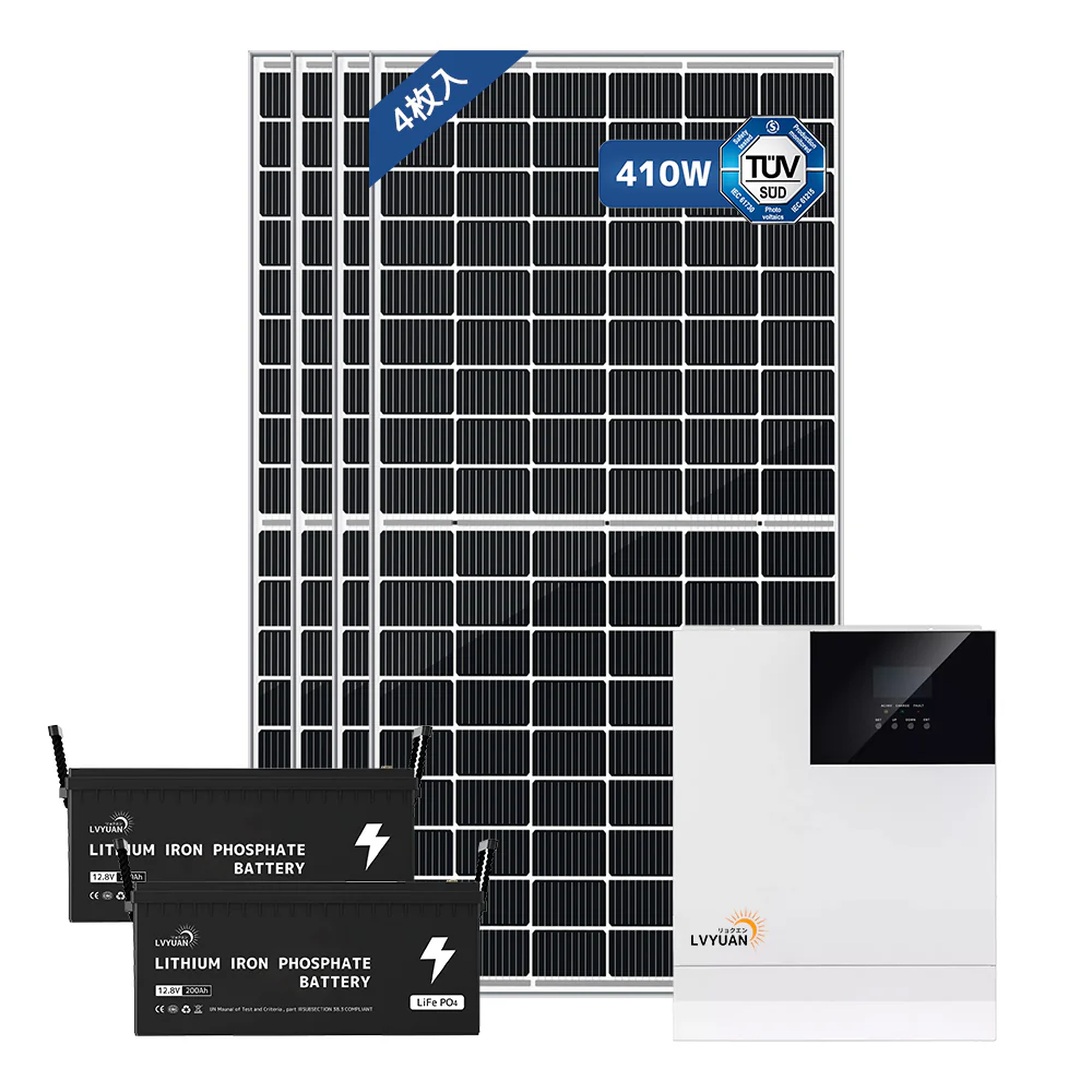 1640Wソーラー発電システム ハイブリッドインバーター出力3000W(3000w ハイブリッドインバーターと12.8V200Ahリン酸鉄リチウムイオンバッテリー2台、4枚の410wのソーラーパネルと共に利用いただくことで蓄電・発電システムを構築できます。)