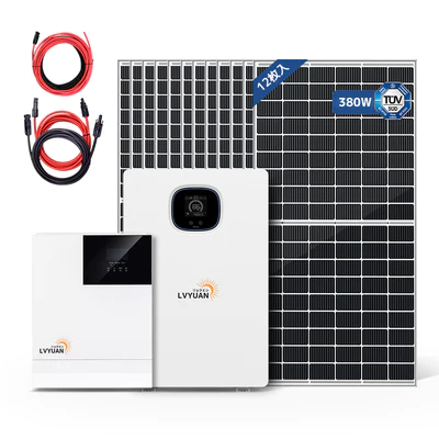 5.12kWh家庭用縦型ハイブリッド蓄電システム(5.12kWh 家庭用蓄電池 +5000W 正弦波 オフグリッド ハイブリッド インバーター+TUV規格品25年間リニア出力 380W単結晶 ソーラーパネル 12枚入 セット)