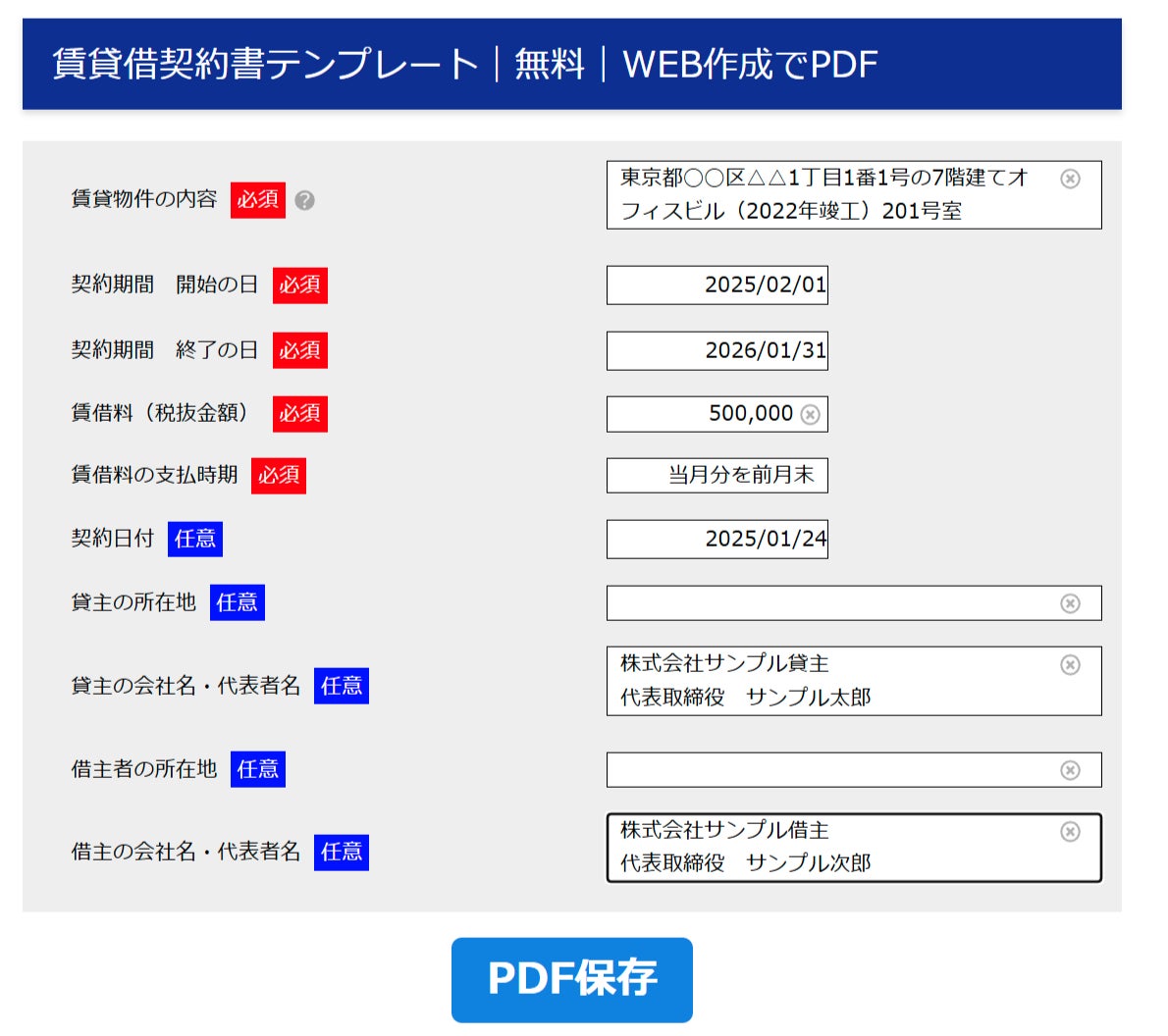 契約書に必要な事項がフォームに表示されているため、入力するだけでご利用いただけます。