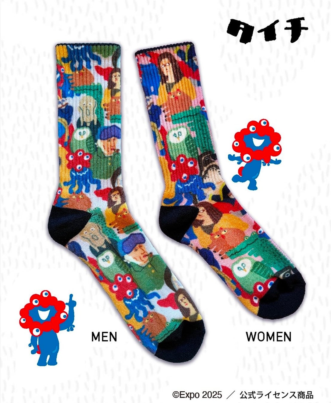 大阪万博公式キャラクター「ミャクミャク」とのコラボソックスや刺繍ソックス、代官山の人気ショップ「Diral代官山」×「タイチ」のオリジナルレザータグなど、数量限定で会場に並びます。