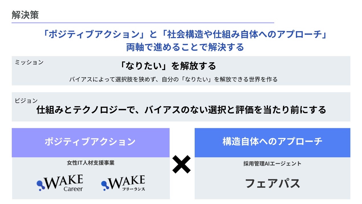 これにより企業は、「多様性を意識して採用する」必要はなく、 フェアな採用を続けていたら、気づいたときには多様なチームになっていた—— そんな状態を無理なく実現できるようになります。