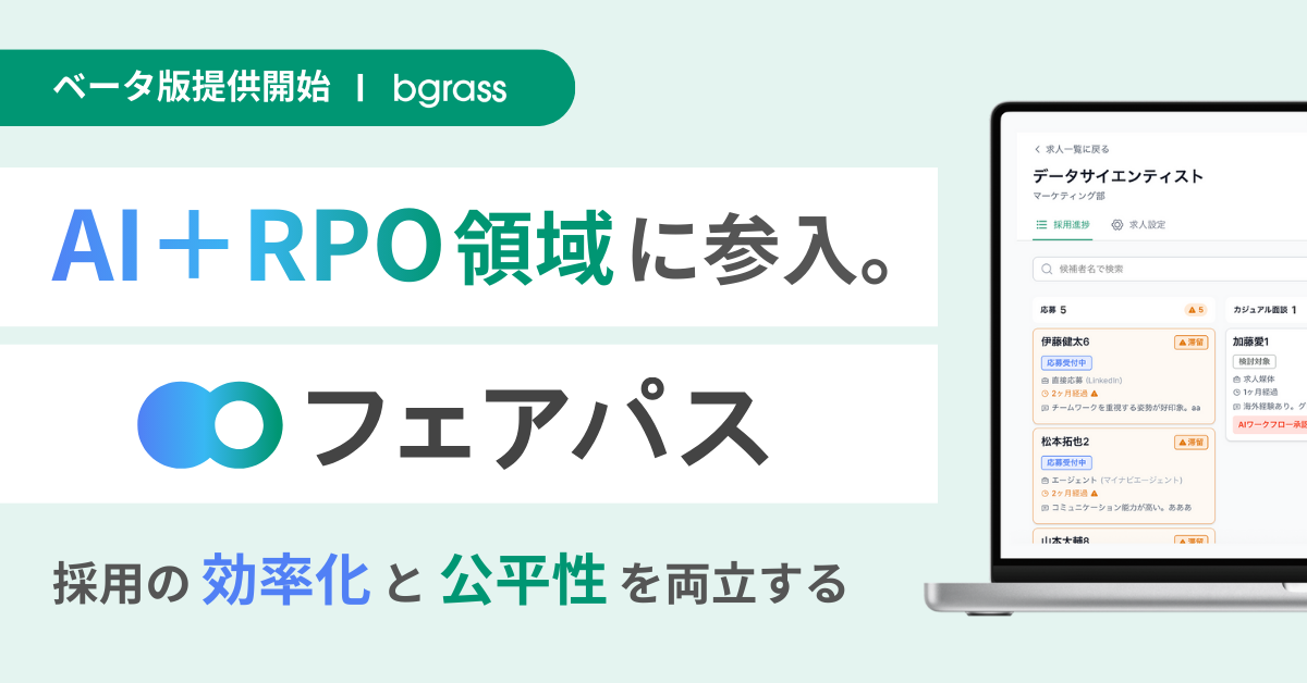 bgrass株式会社、AI+RPO領域に本格参入。採用の効率化と公平性を両立する「フェアパス」ベータ版を提供開始