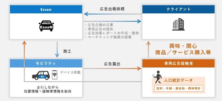 今回の支援を通し、モビリティ広告市場の拡大および地域社会の発展に貢献します。Essen社が目指す5兆円規模のモビリティ広告市場の実現に向けて、当社の知見とリソースを活かしながらEssen社との連携を強化し、モビリティ広告市場の発展に寄与します。さらには、地域社会の発展という観点から、新しい広告価値の創造と地域経済の活性化に貢献し全国に波及させ、より良い日本の創造を目指していきます。