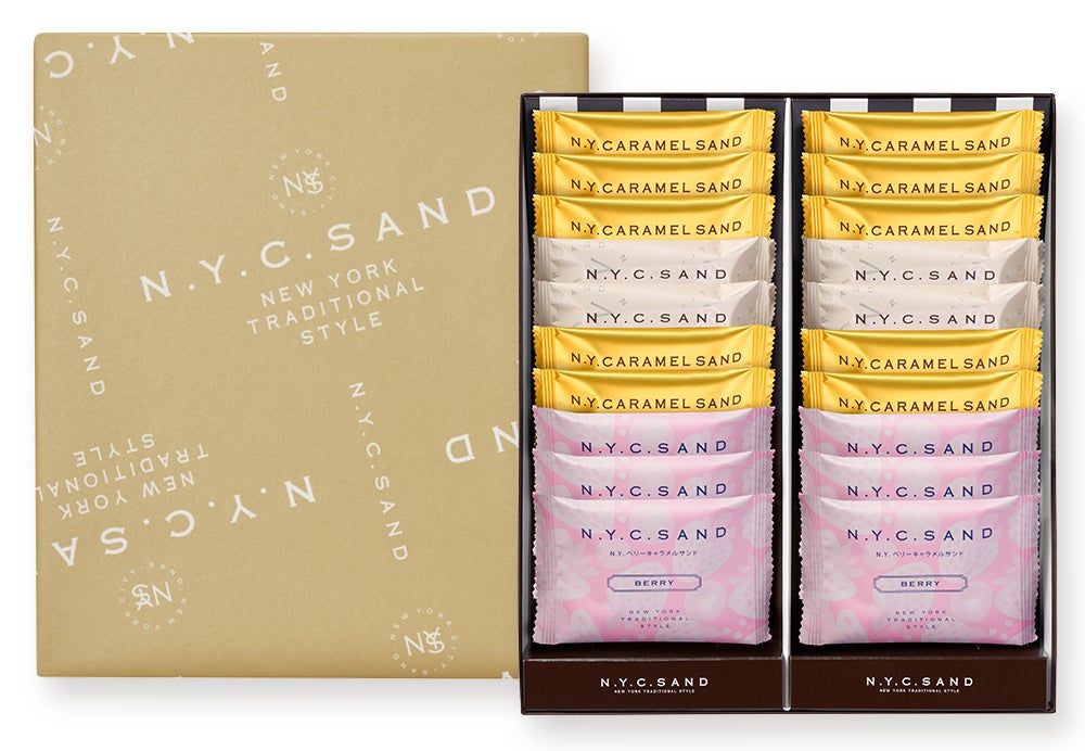 (N.Y.キャラメルサンド10個、N.Y.スカッチサンド4個、N.Y.ベリーキャラメルサンド6個)