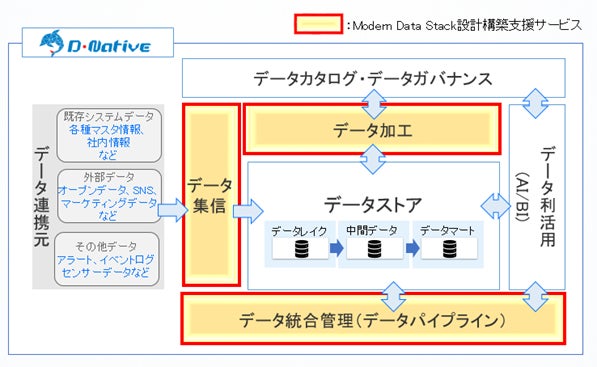 D-Nativeは、ビジネスの課題の整理、データ活用の基盤構築、データ活用の定着化といったフェーズにおいて、伴走型でお客様のデータ活用を支援するサービスで、Modern Data Stack設計構築支援サービスの追加により、お客様はデータ活用に集中した業務が可能になります。