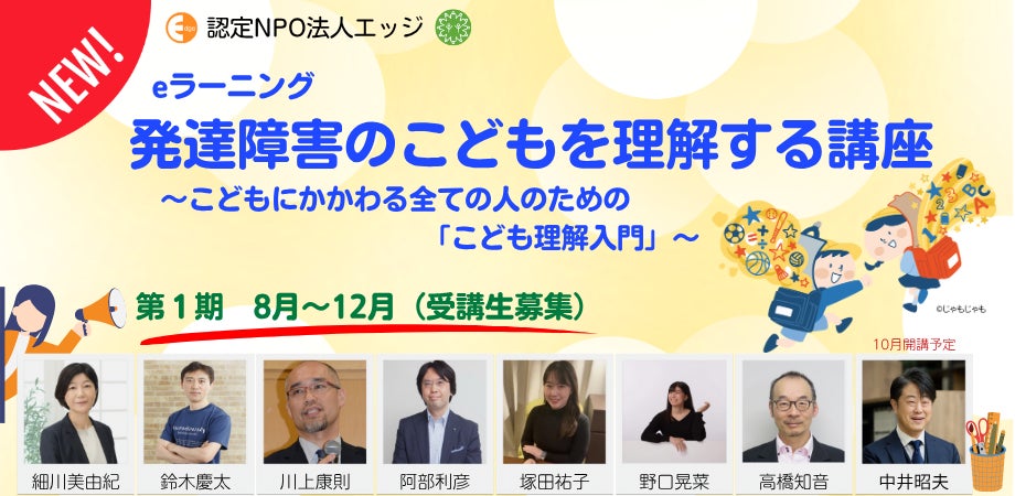 認定NPO法人エッジ(東京都港区 会長 藤堂栄子)は【発達障害のこどもを理解する講座】eラーニングを開講。発達障害のこどもの特性や背景を理解し、事例やワークを通して支援で活かせる知識と視点を学べます。