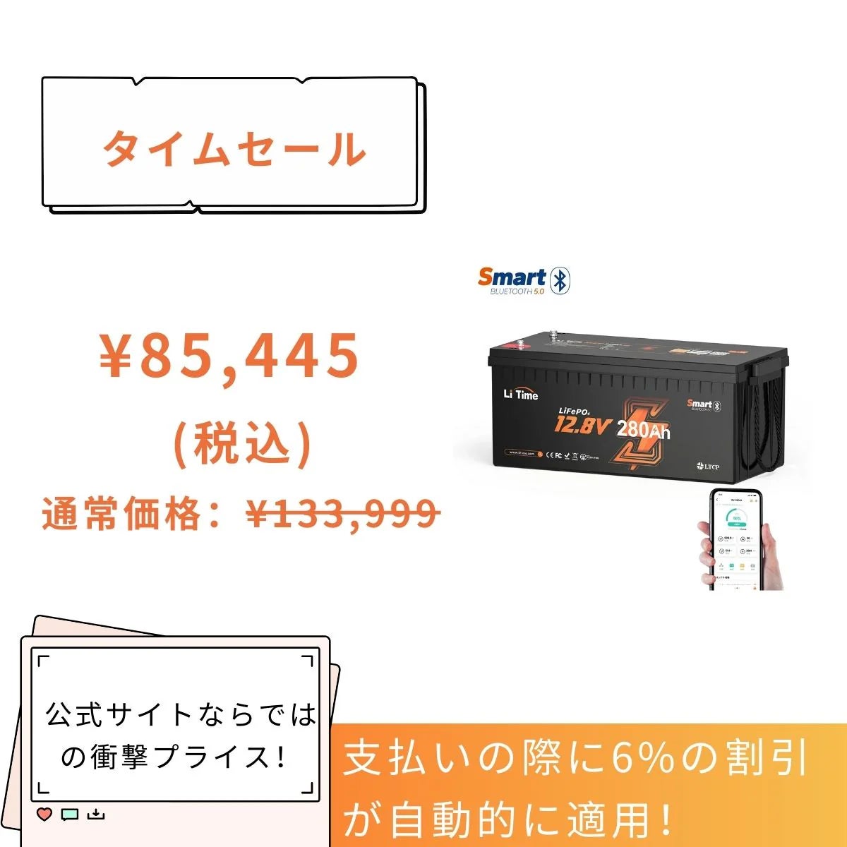 12V280Ah Bluetooth付き:特別価格85,445円!(48,554円円割引、約37%OFF)
