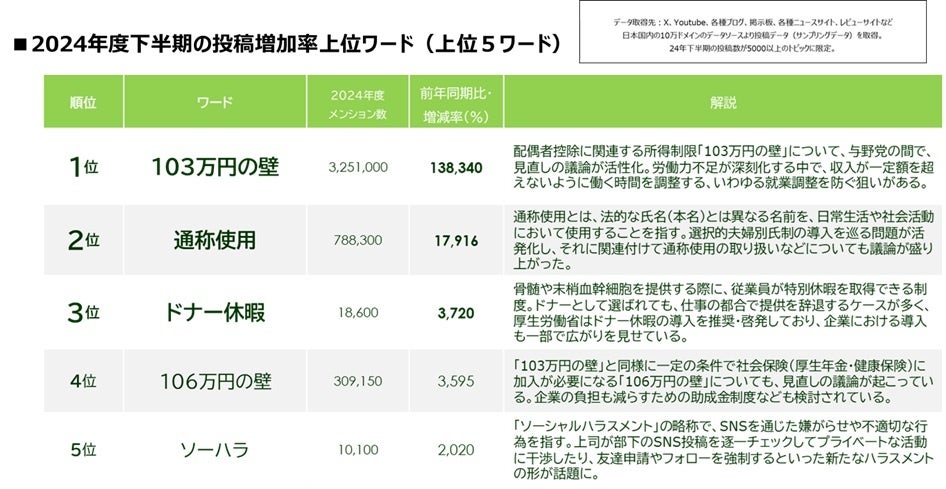 「はたらくソーシャル・リスニング(24年度下半期)」を発表 「103万円の壁」が前年比約1,390倍―制度疲労と”働き控え“のリアルがSNSにあふれる