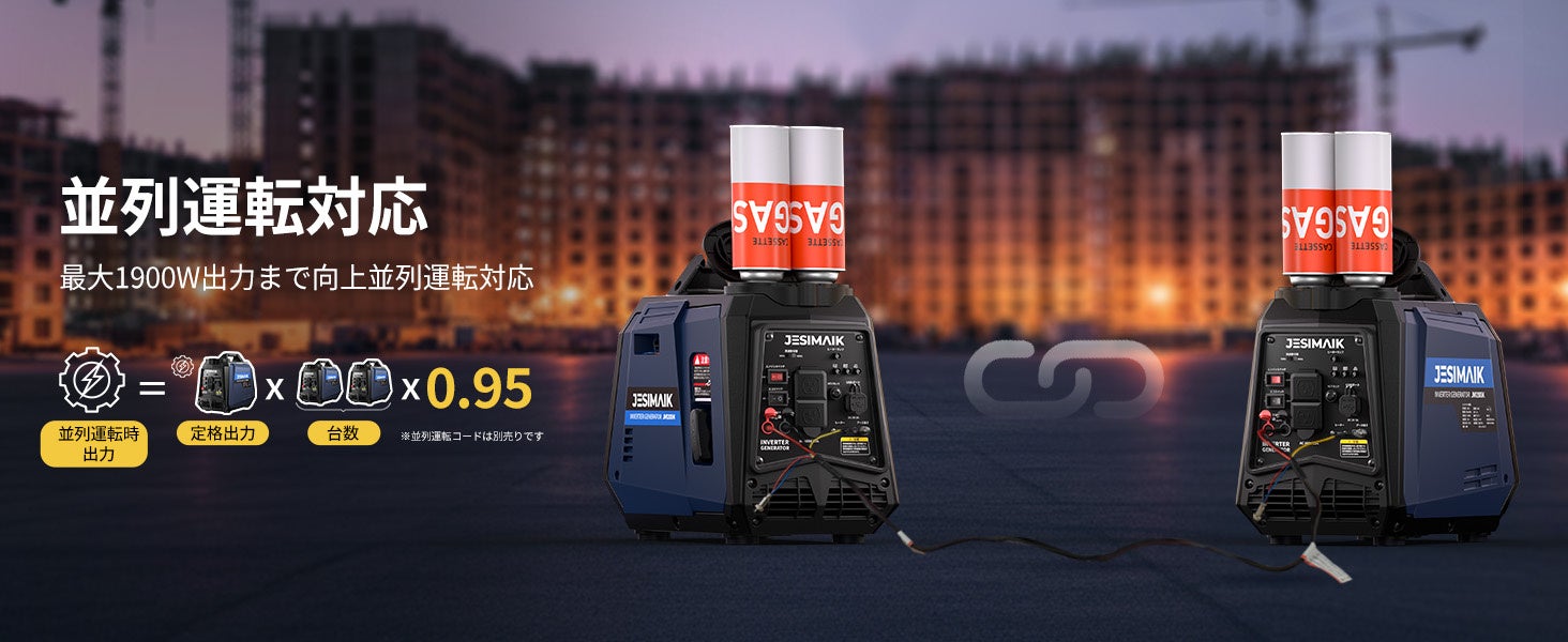 JM1200iKは定格出力1000Wに対応し、並列運転により最大1900Wまで出力を拡張できます。