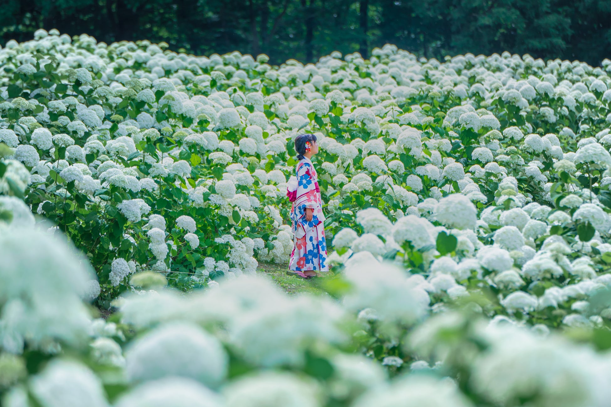 白いあじさいが咲き広がる「アナベルの森」に、新たなフォトスポット「純白の扉」が登場しました。神秘的な純白の森で没入感を味わってみてください。