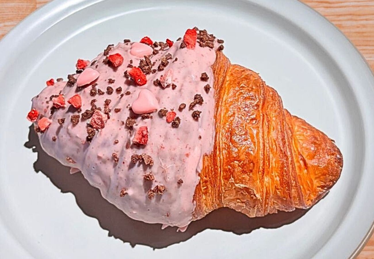“愛”の象徴であるハート型のチョコがトッピングされた「愛のストロベリークランチクロワッサン」を販売します。また、期間中に販売するすべてのドリンク*3のストローがハート型に変更します。