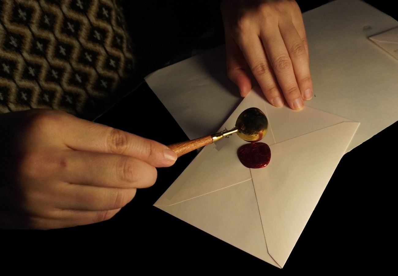 手紙の書き方を学び、本格的なラブレターをつくります。シーリングスタンプで封を閉じて、水族館の特設ポストに投函します。