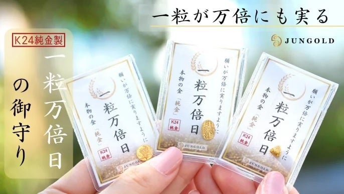 今、注目の開運日「一粒万倍日」。一粒が万倍にもなる開運日を無垢のK24「純金」のお守りに託して。その価格の高騰が止まらない価値ある素材でつくる“本物のお守り”