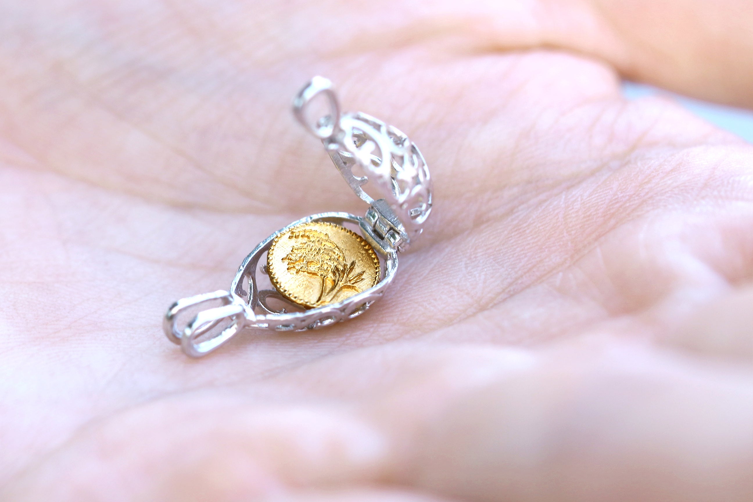 専用ペンダントトップ 。純金の御守りを入れて、ペンダントとして身に着ける事ができます。
