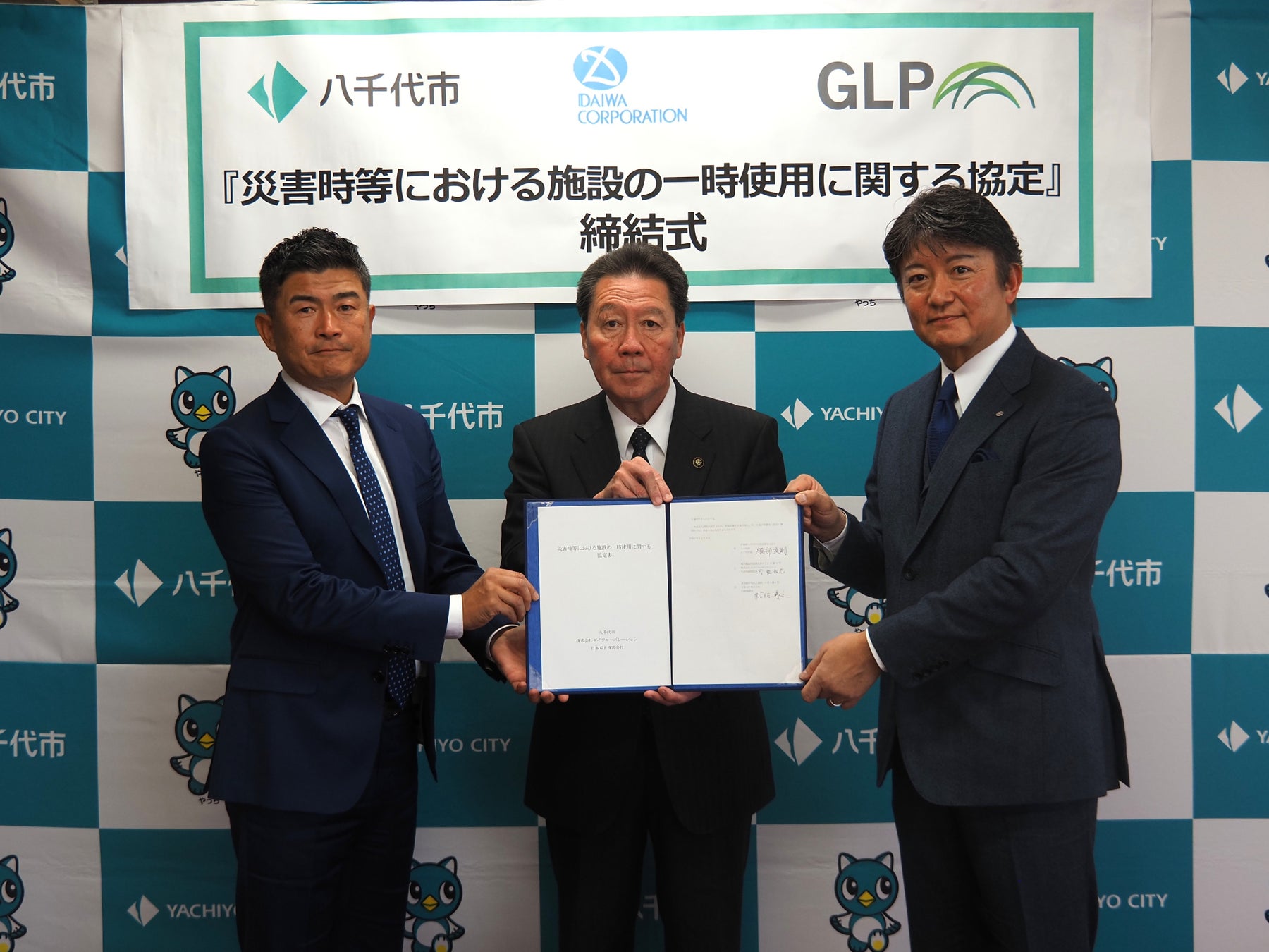 物流サービスを提供する株式会社ダイワコーポレーション(所在地:東京都品川区、代表取締役社長:曽根 和光)は、日本GLP株式会社(所在地:東京都中央区、代表取締役社長:帖佐 義之)とともに、八千代市と「災害時等における施設の一時使用に関する協定」を締結いたしました。