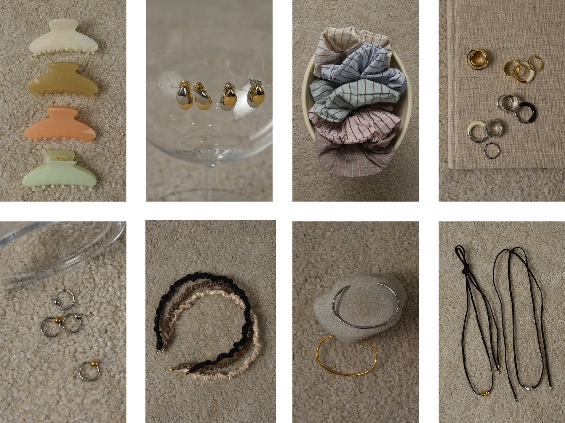 ピアス、ヘアクリップ、シュシュなど日常をさりげなく寄り添うアイテムをラインナップ。