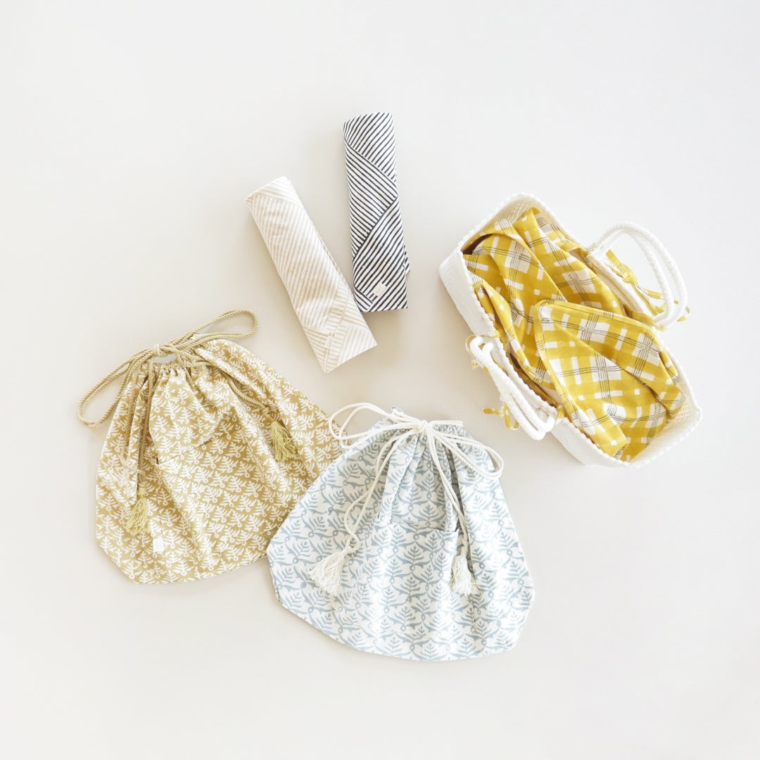 メルカドバッグをカスタマイズできるバッグインバッグは、インドの伝統技法であるブロックプリントを採用しています。工房で大切に受け継がれてきた木版に、Letraで色をのせてオリジナルの生地を製作。