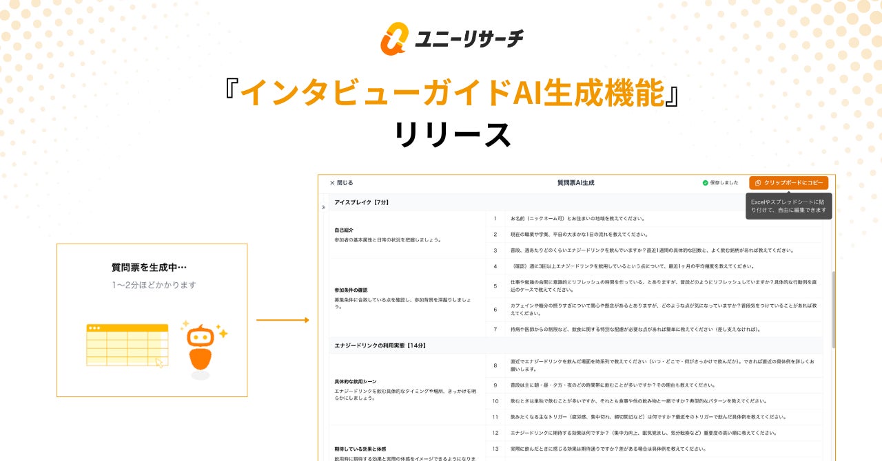 質問設計のハードルを取り除く。ユニーリサーチ、「インタビューガイドAI生成機能」をリリース